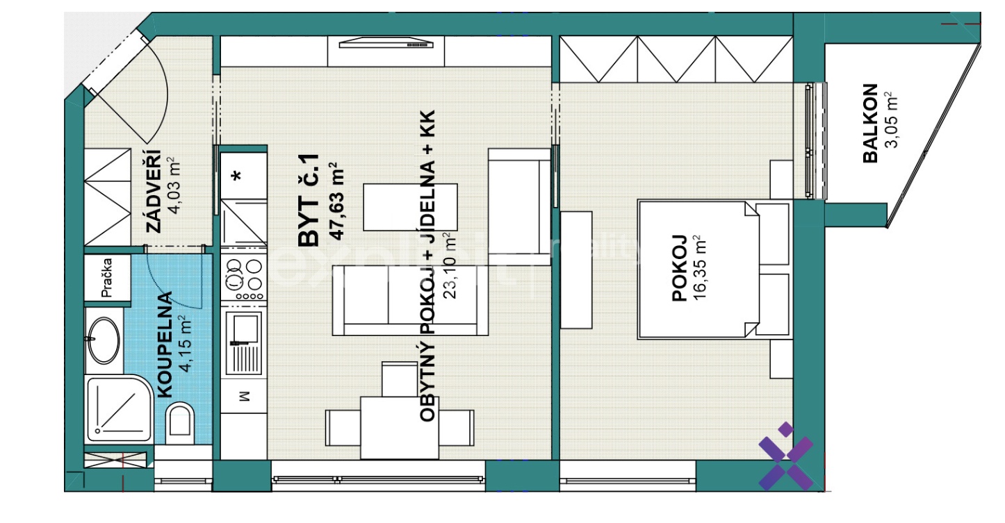 Nabízený byt o dispozici 2+kk má podlahovou plochu 48 m² a nachází se v přízemí domu. Výhodou je přímý vstup bez schodů z parkoviště, který zvyšuje komfort každodenního užívání.