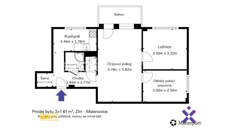 Prodej bytu 3+1 61 m², Zlín – Malenovice