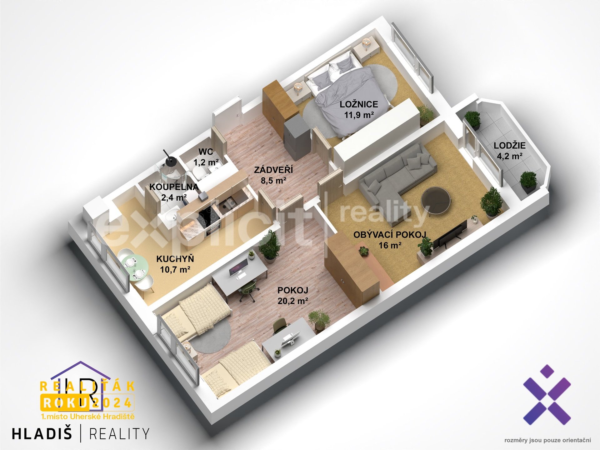 – dispozice 3+1, celková plocha 77 m², užitná plocha 71 m², balkon 4 m² a sklep 2 m²