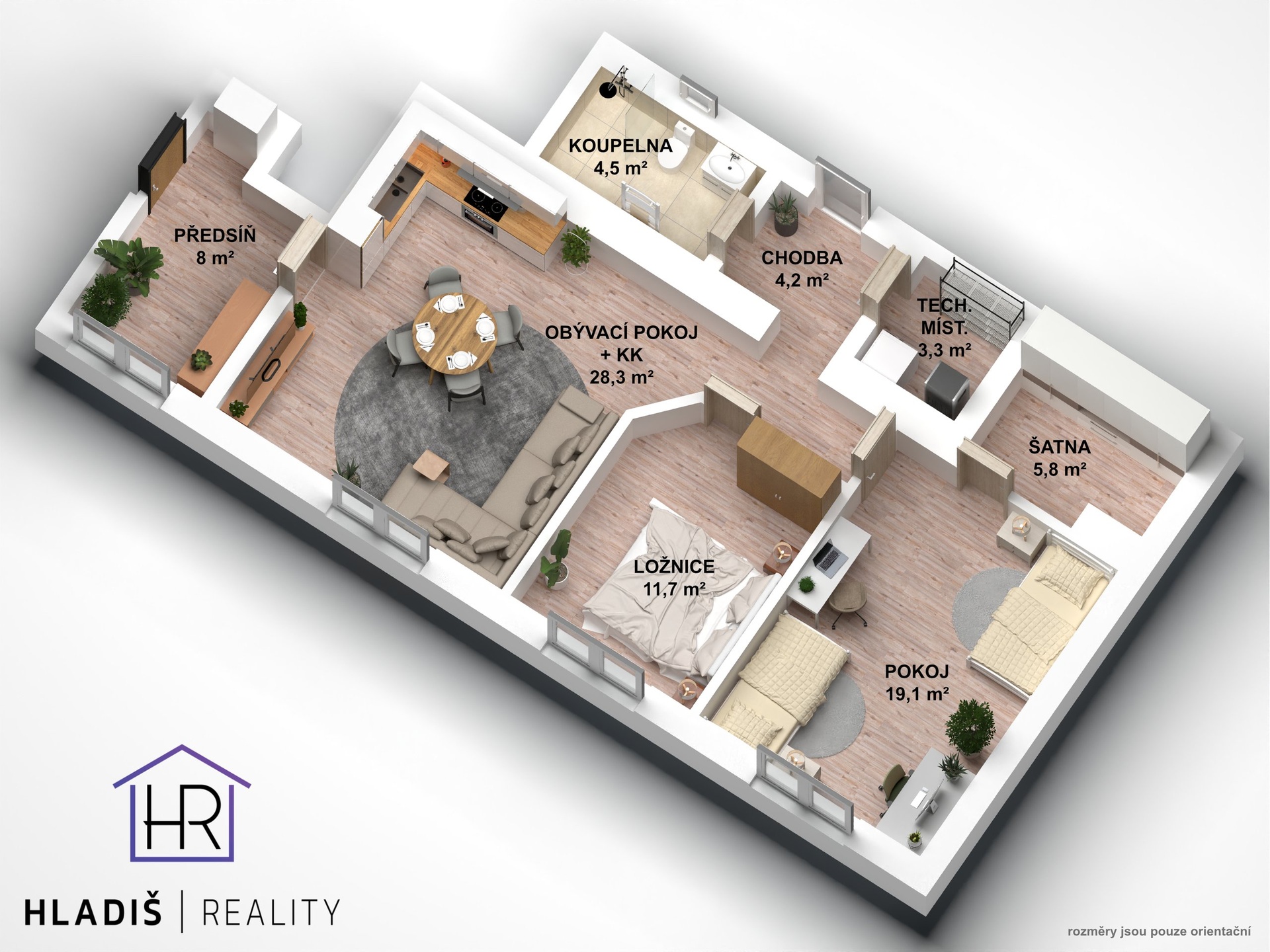 – dispozice 3+kk, užitná plocha 86 m², celková plocha 102 m², 1. podlaží – bezbariérový