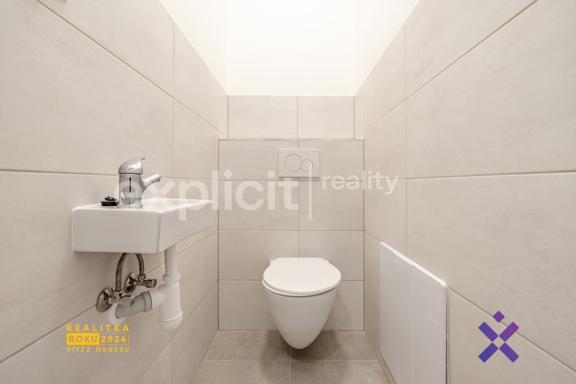 Z chodby je také přístup na samostatnou toaletu a do zděné koupelny, která svou velikostí umožňuje instalaci vany i sprchového koutu. K dispozici je také dostatek místa pro pračku a sušičku.