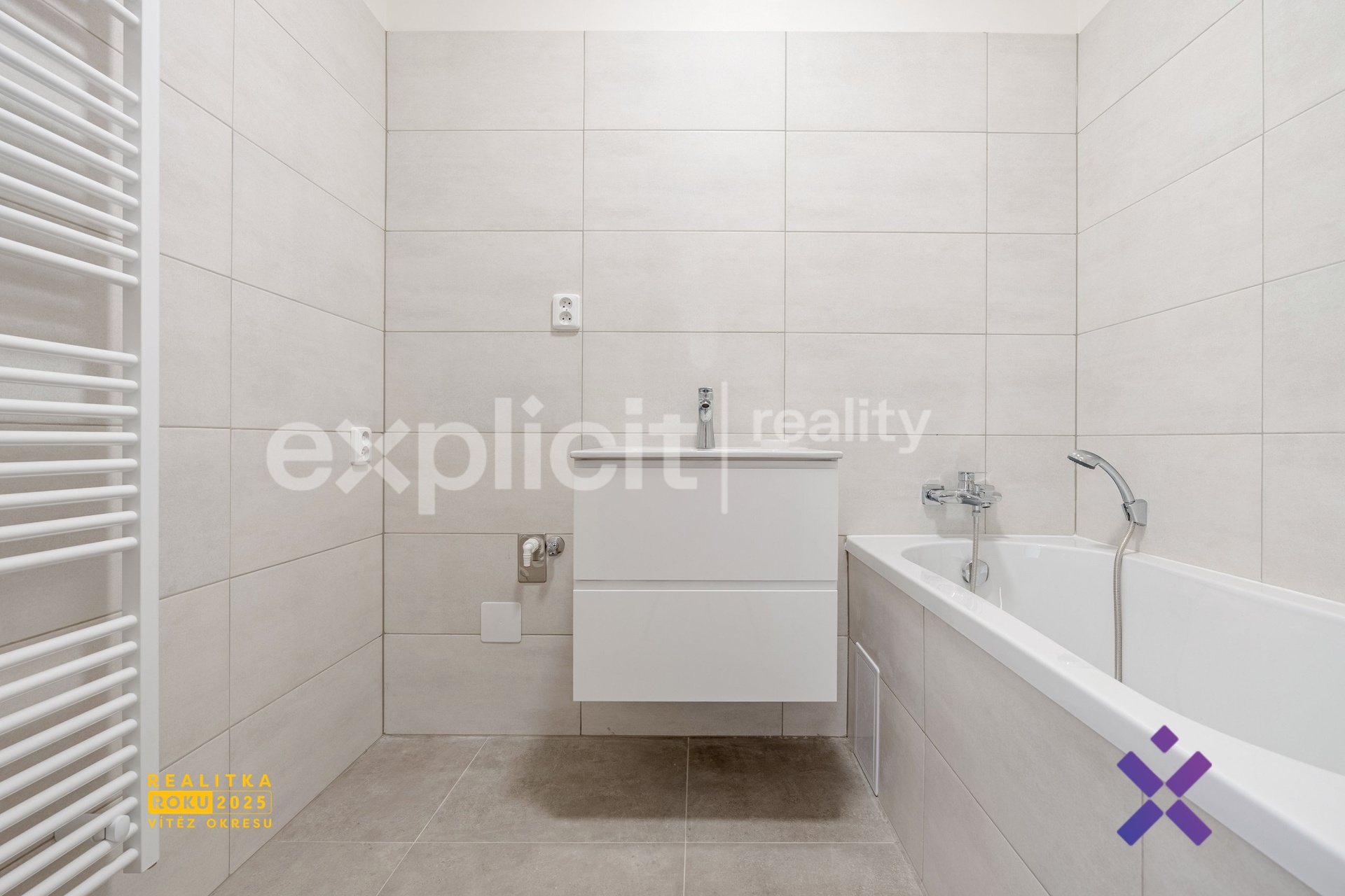 Součástí bytu je také samostatná toaleta a zděná koupelna s vanou. Nechybí ani dostatek prostoru pro pračku a sušičku.