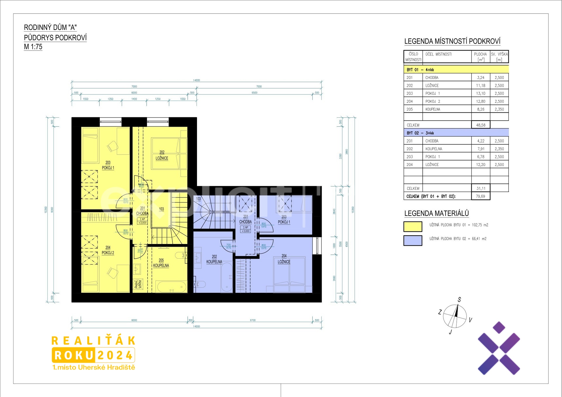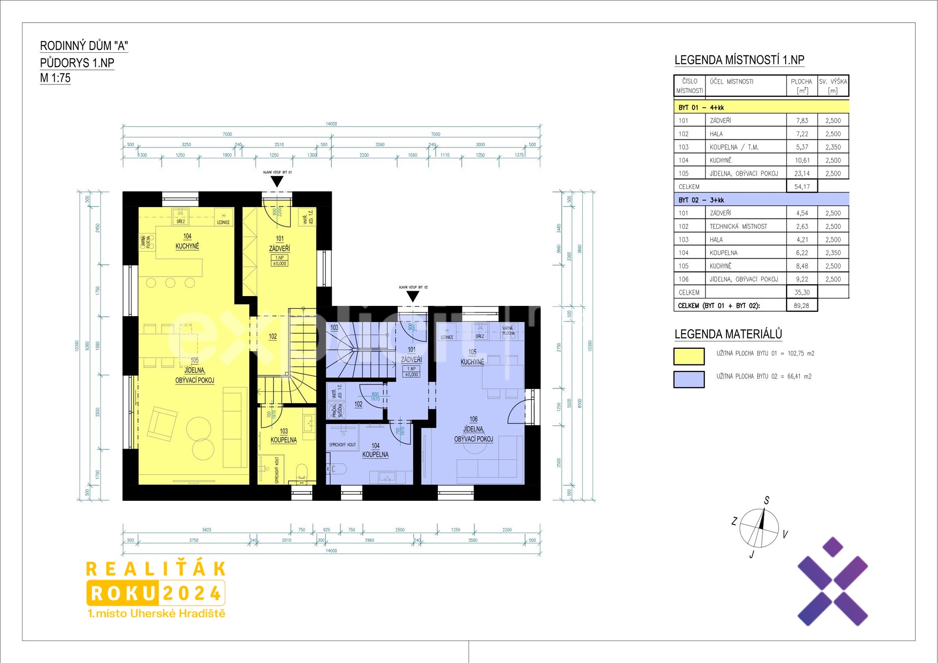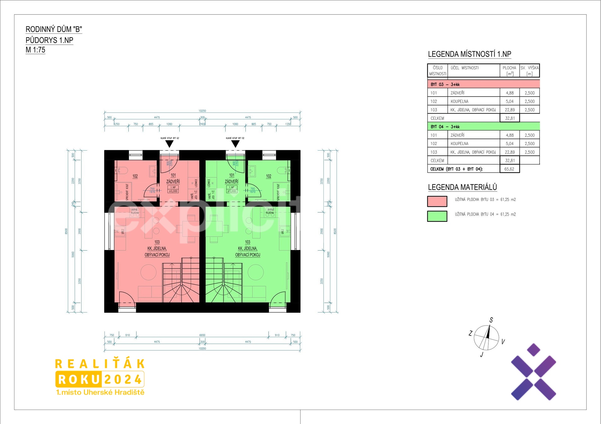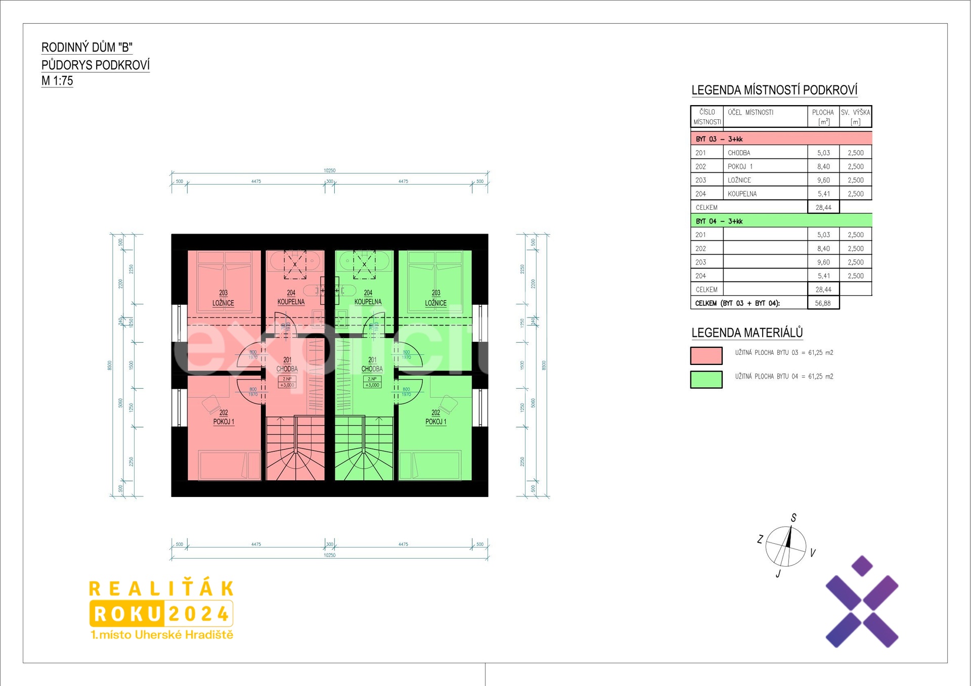 – celkem 4 bytové jednotky ve dvou dvojdomech