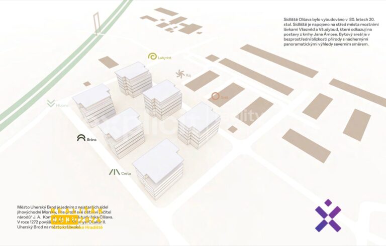 Uherský Brod, ideální město pro život, nabízí kompletní občanskou vybavenost, školy, školky, MHD, restaurace, obchody, lékaře, široké spektrum průmyslových odvětví, kulturní vyžití, hvězdárnu a mnoho dalšího. Sídliště Olšava, postavené v 80. letech 20. stol., je spojeno s centrem města mostními lávkami Všezvěd a Všudybud, odkazujícími na postavy z knihy Jana Ámose. Bytový areál je také v bezprostřední blízkosti přírody s nádhernými panoramatickými výhledy na sever.