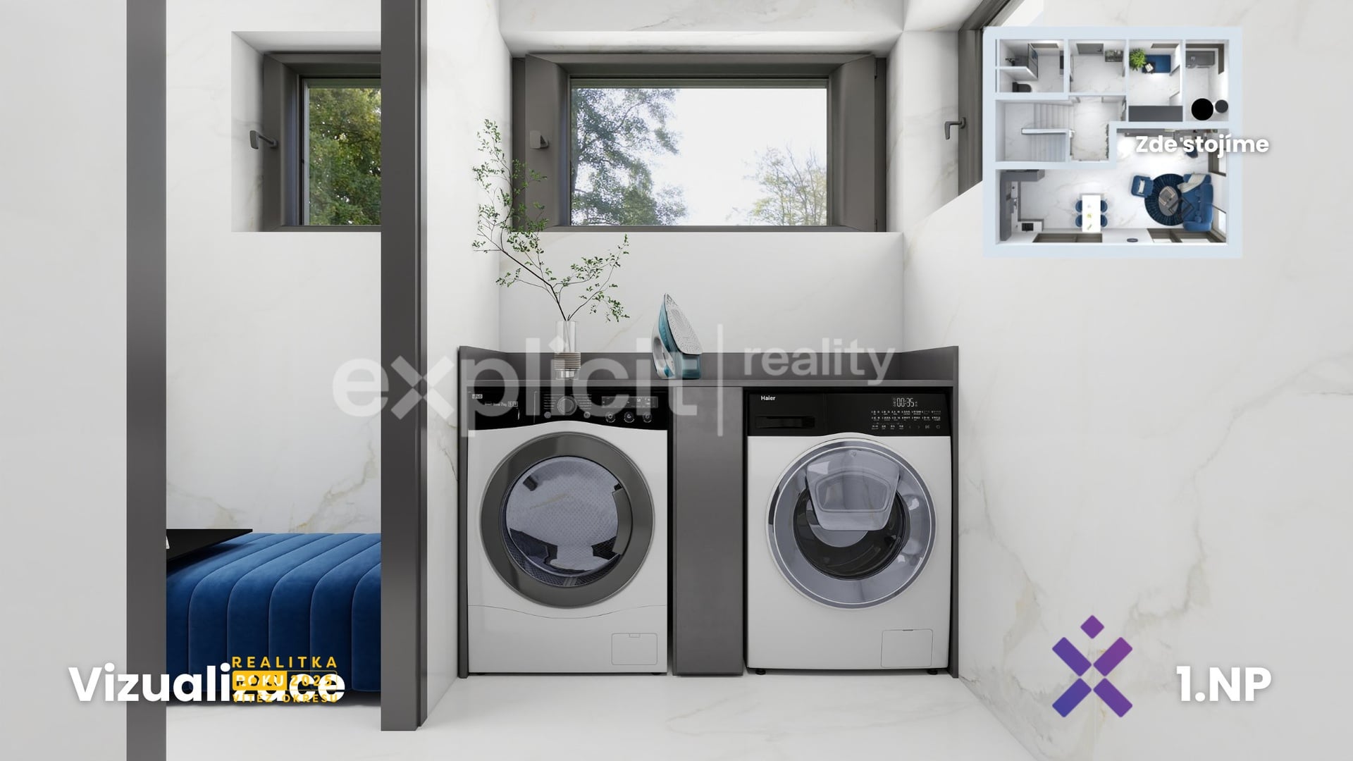 – každý dům má samostatné technické zázemí (pro pračku i sušičku), plynový kotel, rekuperaci i retenční nádrž