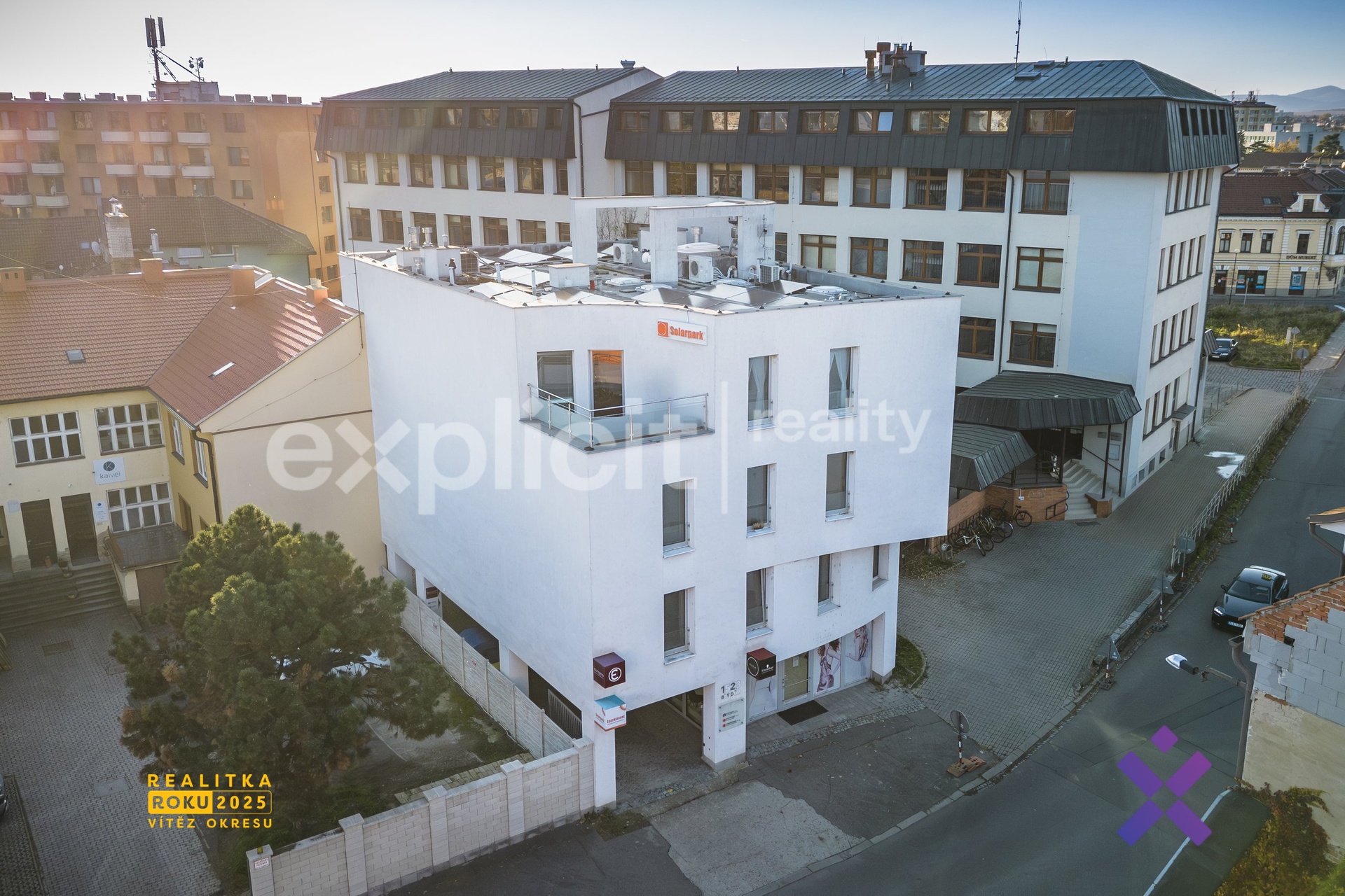 – víceúčelová budova (obchod + kanceláře + byt/studio)
