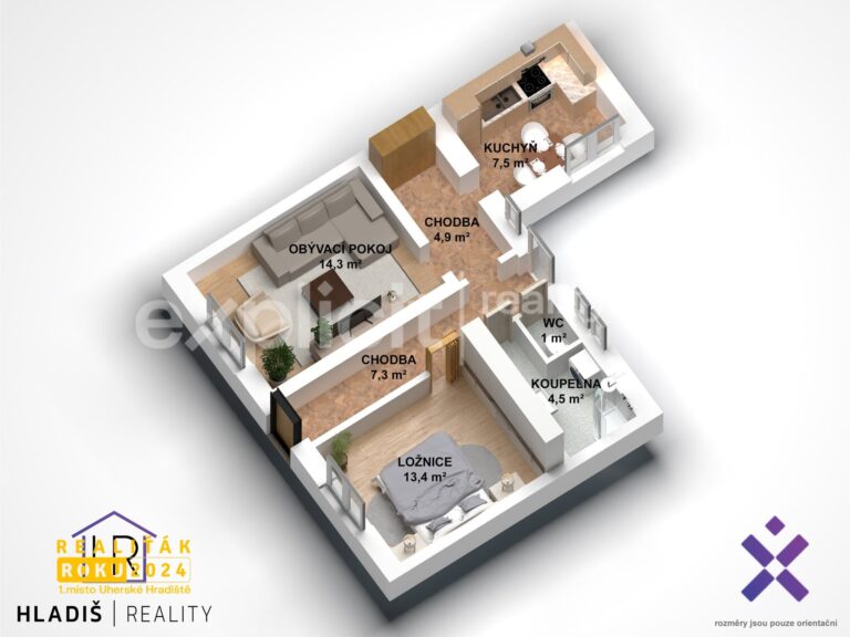 Vizualizace a vyobrazení nemovitosti a pozemku jsou pouze ilustrativní. Závazné údaje o hranicích pozemku jsou uvedeny v katastrální mapě.