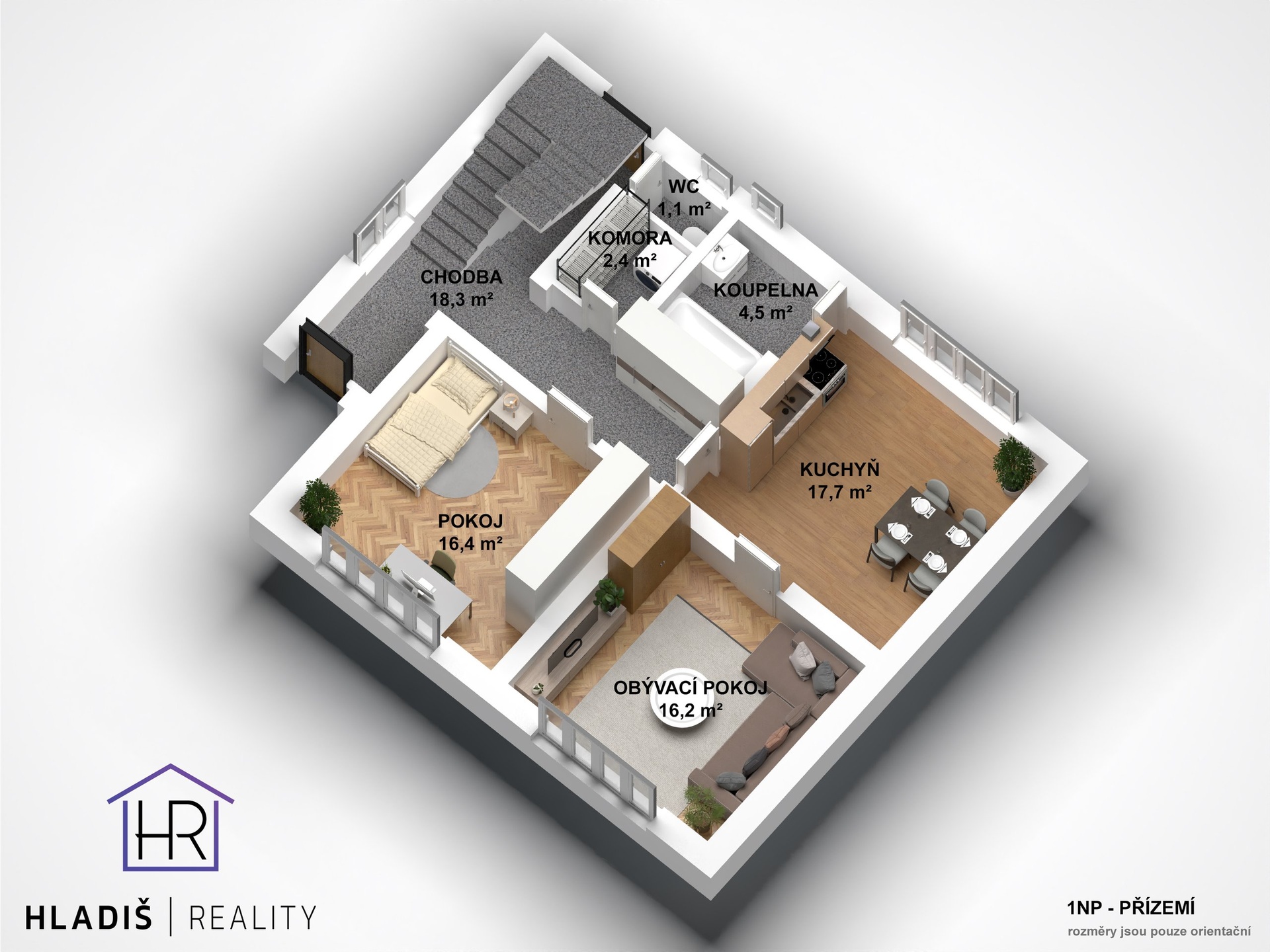 – dispozice 4+1 – možnost rozšíření na 6+1 skrz podkroví v 2. nadzemním podlaží
