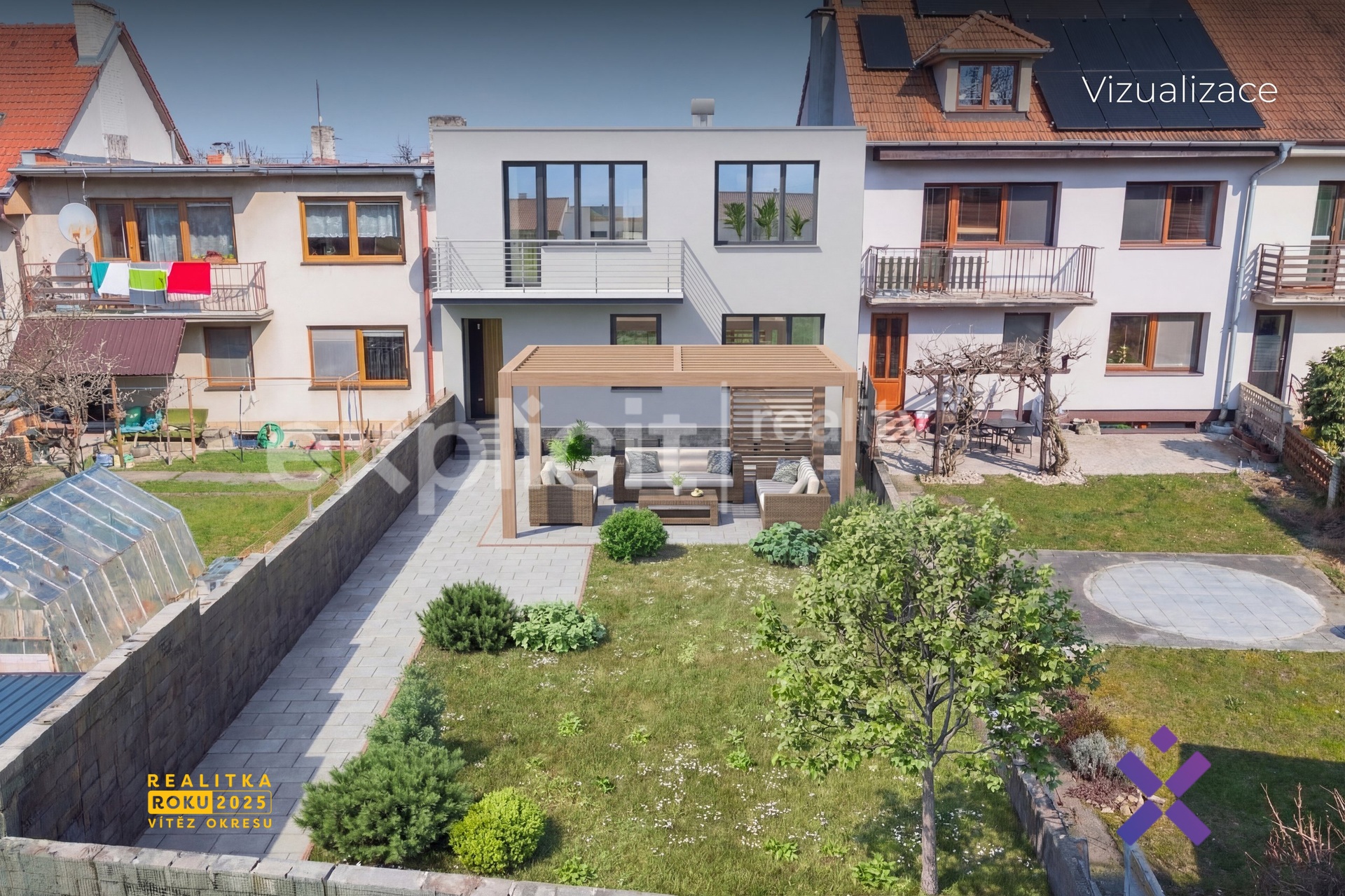 – zahrada orientována na jihozápad, přední část domu na severovýchod