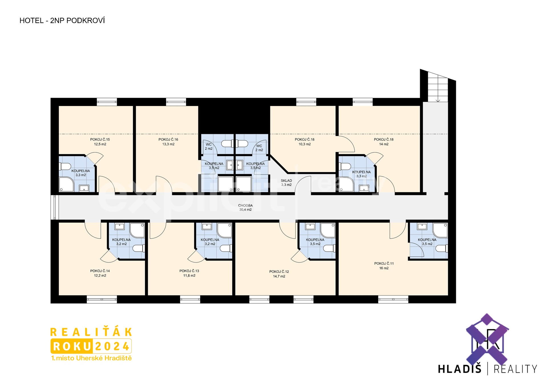 Tento rozmanitý komplex propojuje hotelový provoz, privátní wellness, kancelářské prostory, garáž a automyčku s předmytím. To vše na jednom místě, s výbornou dostupností a vlastním parkováním.