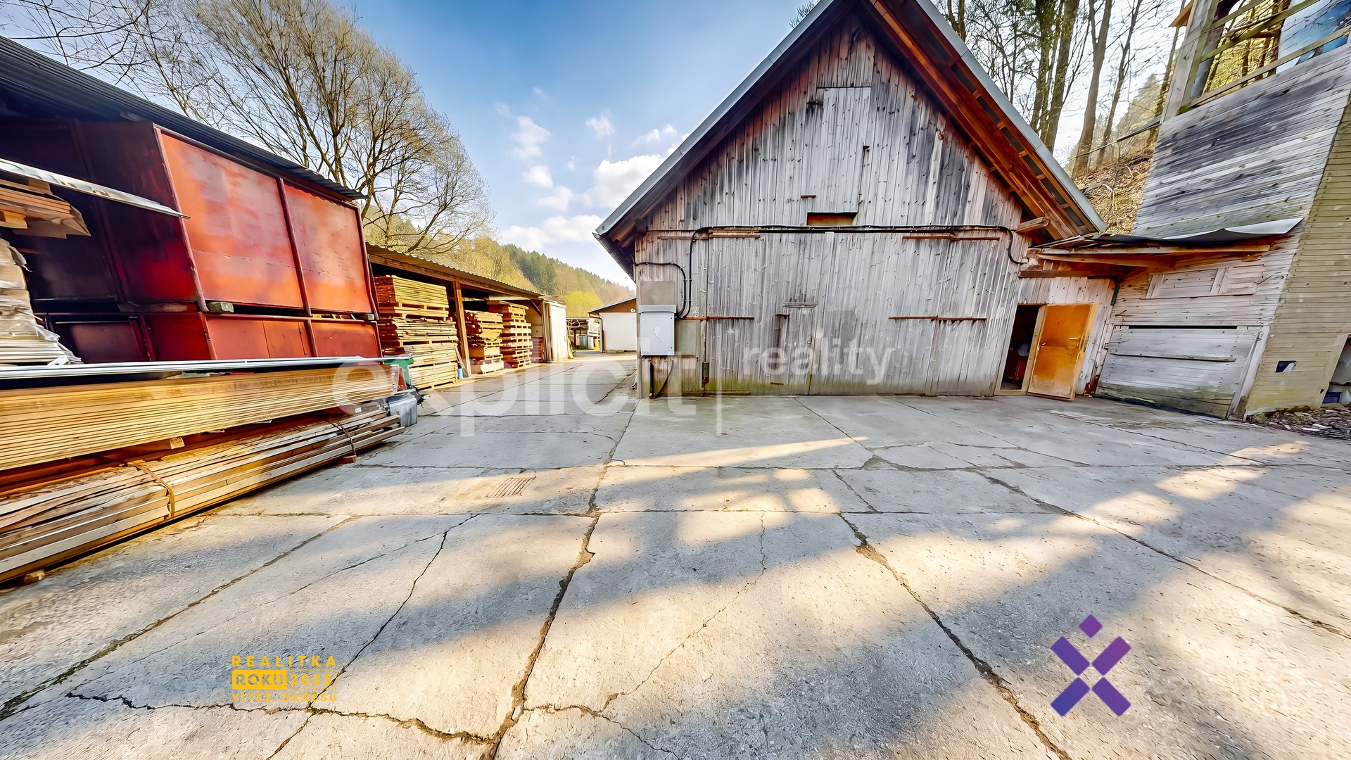 Areál je dobře přístupný po celý rok a disponuje manipulačními plochami v okolí budov, které umožňují skladování materiálu, parkování i obsluhu nákladní dopravy. V zadní části navazuje stavební parcela o výměře cca 800 m², poskytující další rozvojový potenciál (rozšíření výroby, výstavba haly, logistické zázemí apod.).