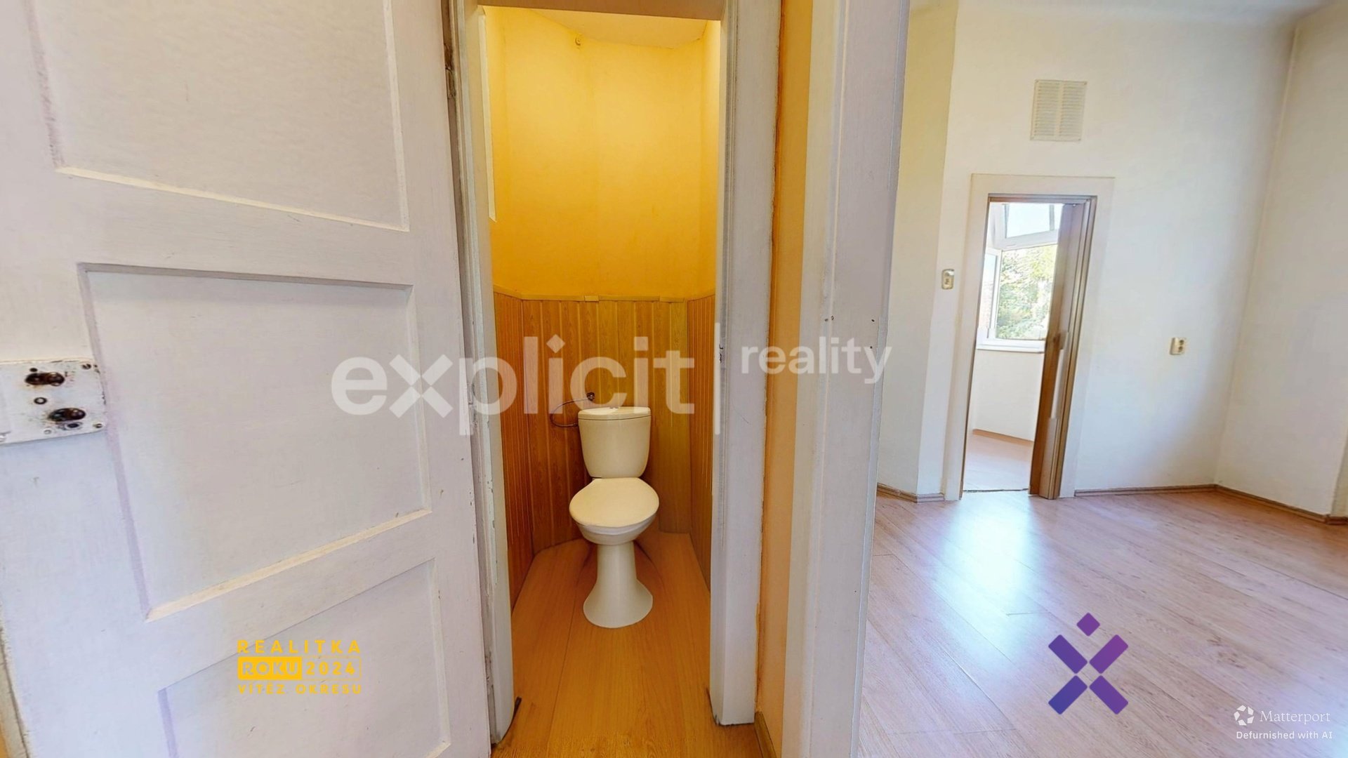 Byt je nevybavený. Dispozice zahrnuje kuchyň, pokoj, koupelnu s vanou a samostatnou toaletu.