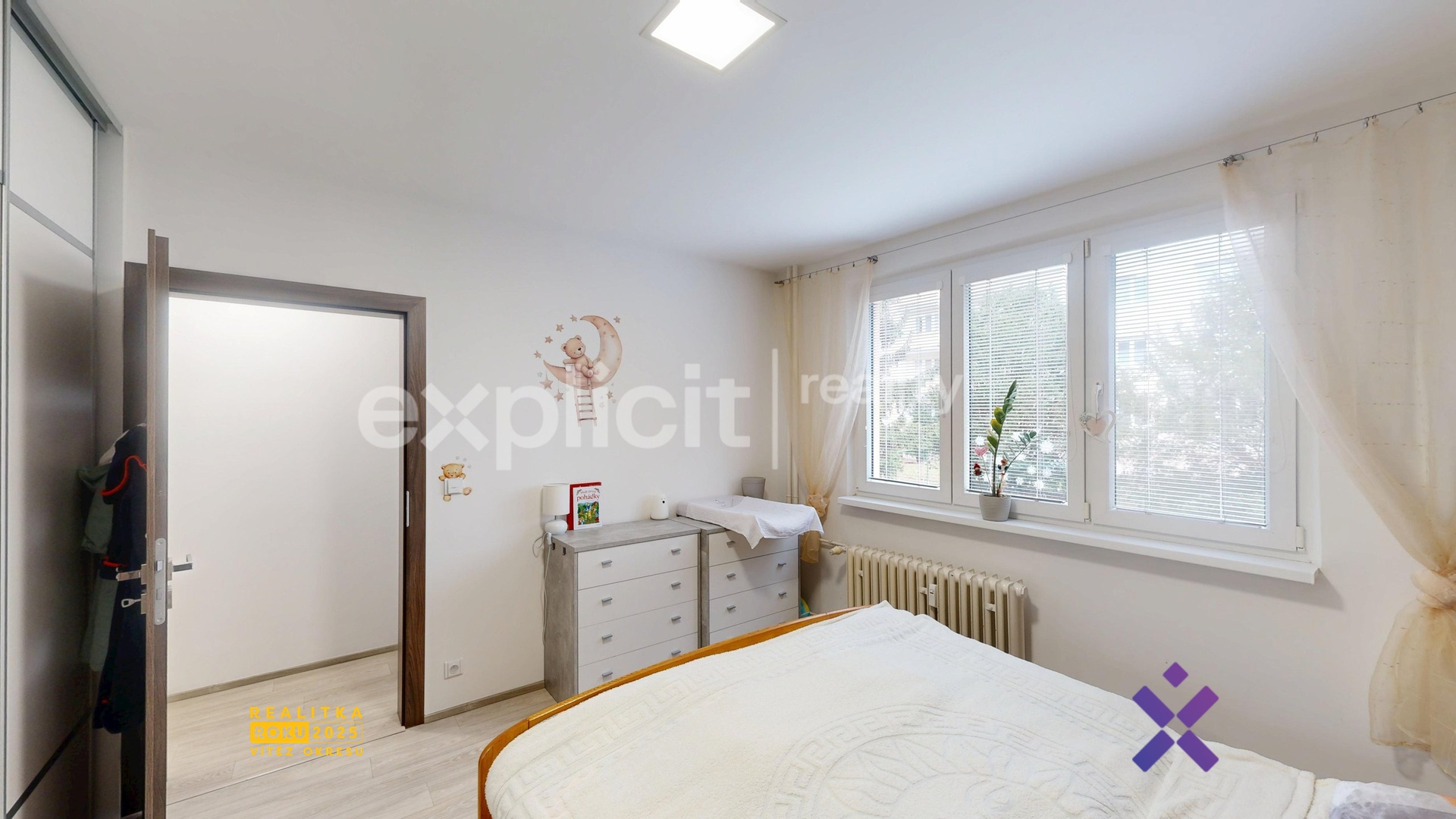 Vedle obývacího pokoje se nachází místnost, kterou lze využít jako ložnici nebo dětský pokoj – nový nájemce si ji může vybavit dle vlastních představ.