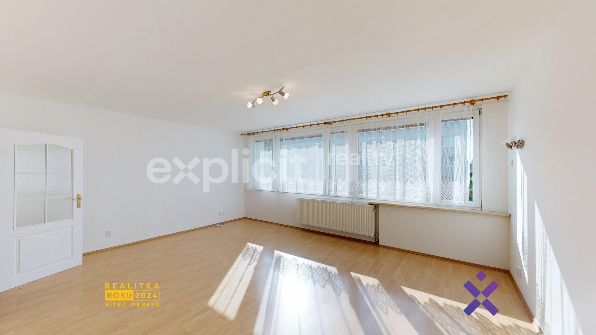 Dispozici tvoří tři samostatné pokoje, kuchyně, koupelna a obývací pokoj. Dominantou bytu je prostorný obývací pokoj o výměře přes 24 m².