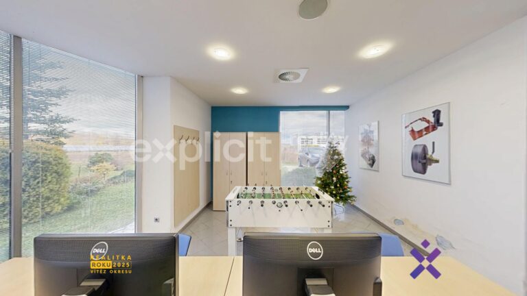 Dispozice je řešena jako jedna větší místnost s technickým a sociálním zázemím. Díky kompletnímu vybavení a technickému zajištění je prostor vhodný nejen pro vzdělávací či školící aktivity, ale také jako kancelář nebo zázemí firmy.