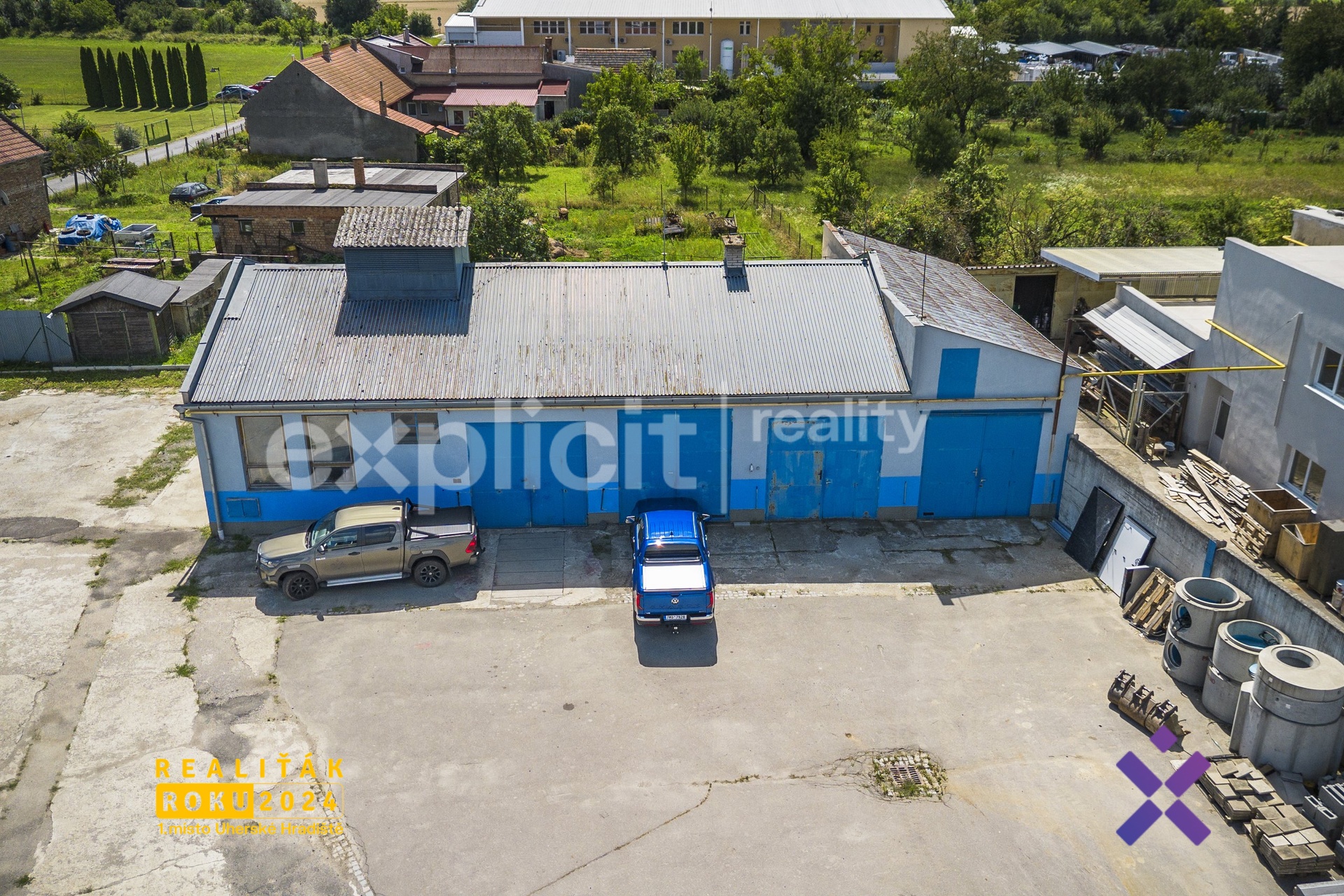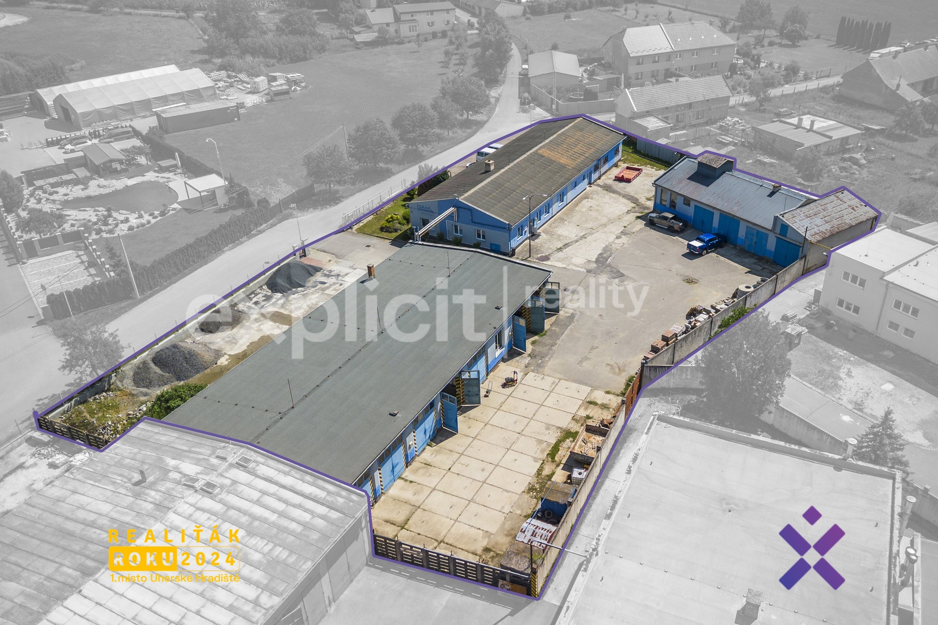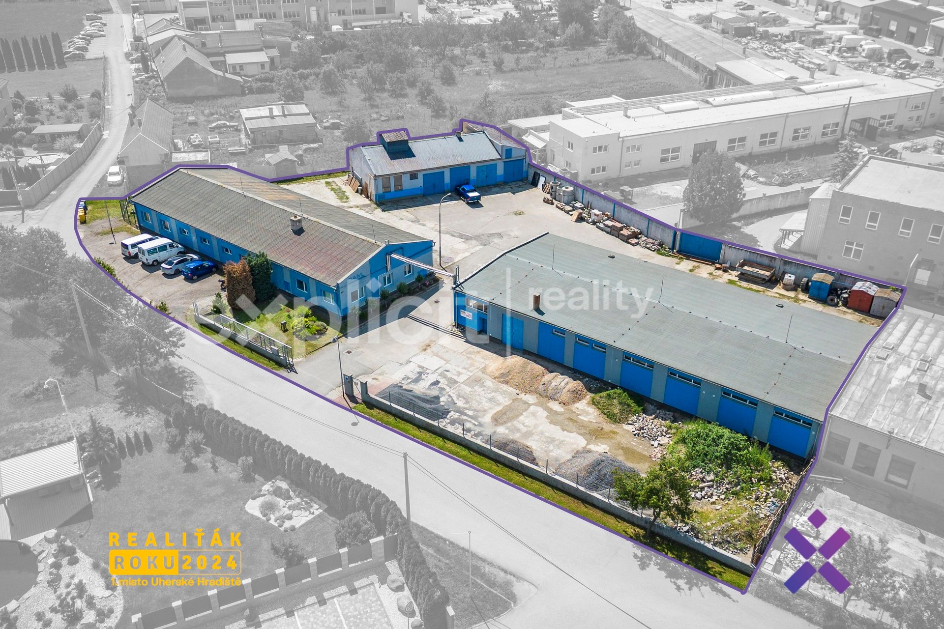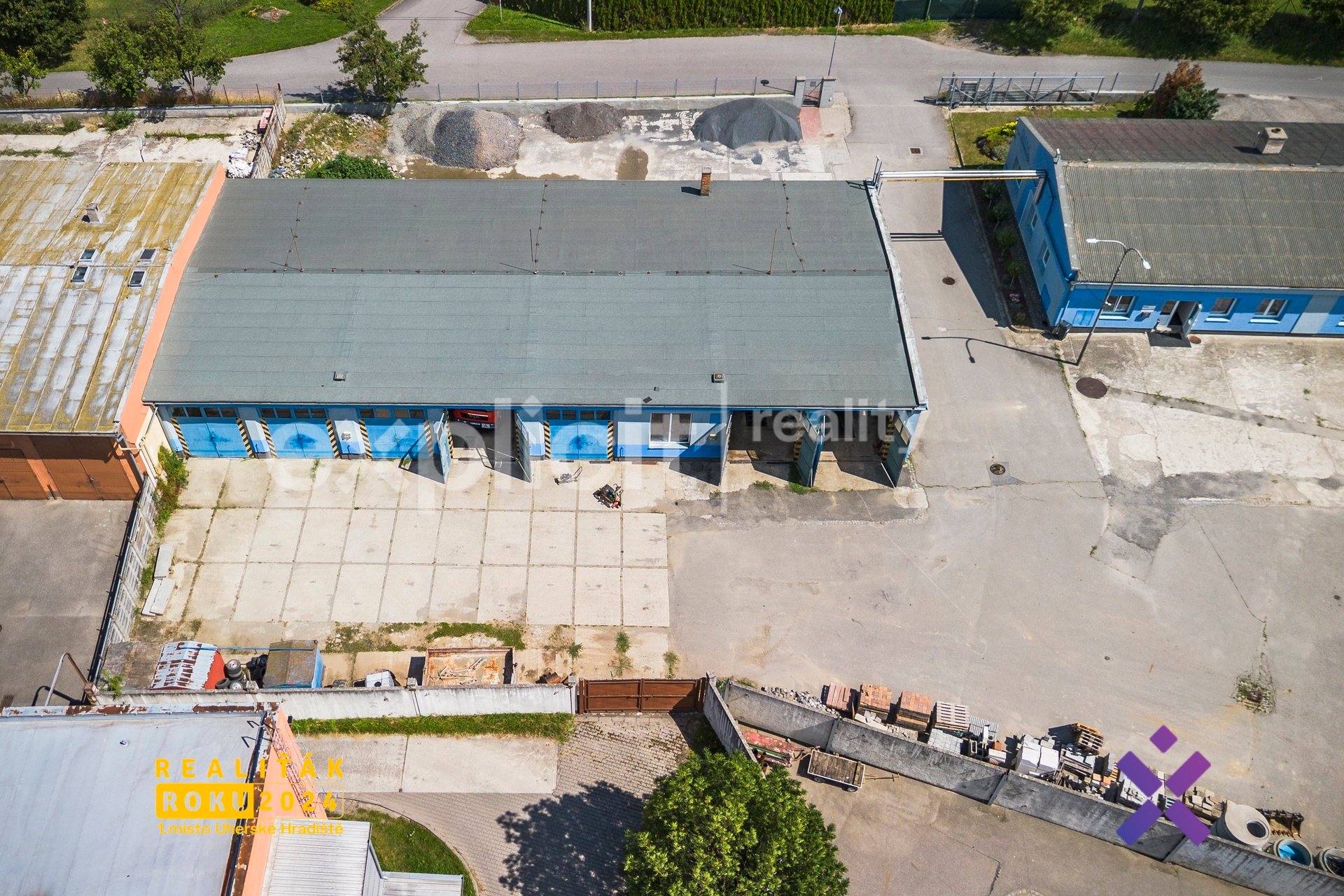 Areál se nachází v dobře dostupné části Kroměříže, kam pohodlně dojedete MHD, autem, vlakem i autobusem. Vjezd je zajištěn širokou posuvnou elektrickou branou – ideální i pro větší nákladní auta. Administrativní budova je vhodná pro kanceláře nebo sklad. Vysoké garáže jsou ideální pro servisní činnost, sklad nebo výrobu. Flexibilita je zde klíčem – vše je o domluvě a případná rekolaudace je možná.