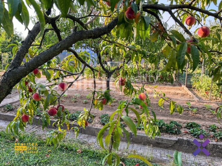 Na zahradě jsou vysázeny ovocné stromy a keře: švestky, třešně, višně, broskve, meruňky a jabloně, ale i borůvky, maliny, angrešt, rybízy, josta a vinná réva.